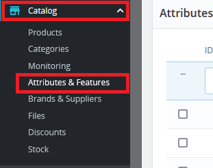 2- By entering the counter on the left side , you will see a toolbar. In this toolbar, click on the catalog and then click on the features.