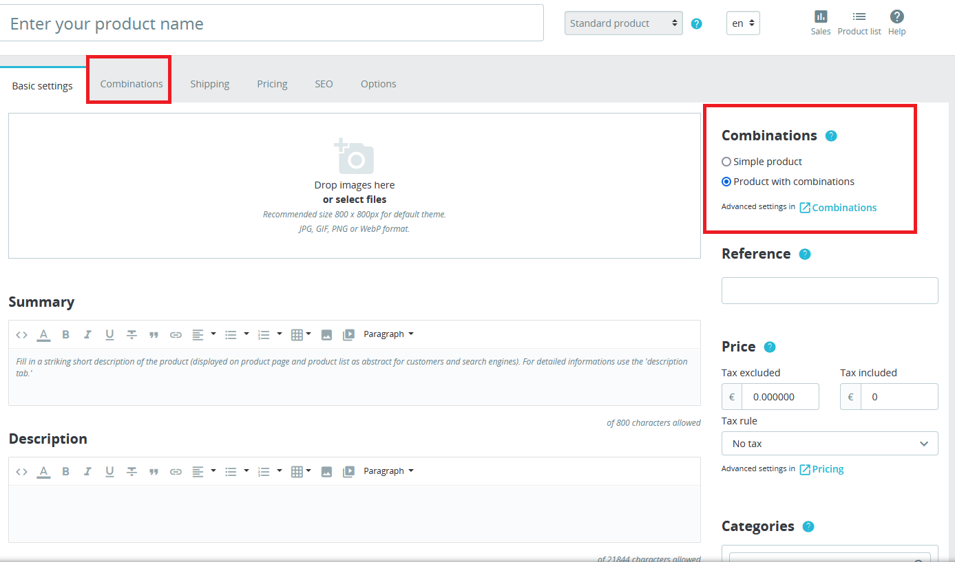 In the screen displayed on the right side, by default, the combinations are on the simple product. If the product is supposed to have a attribute, put this section on the product with combinations. In this case, the combinations tab will be displayed for you. Enter it. We will be divided.